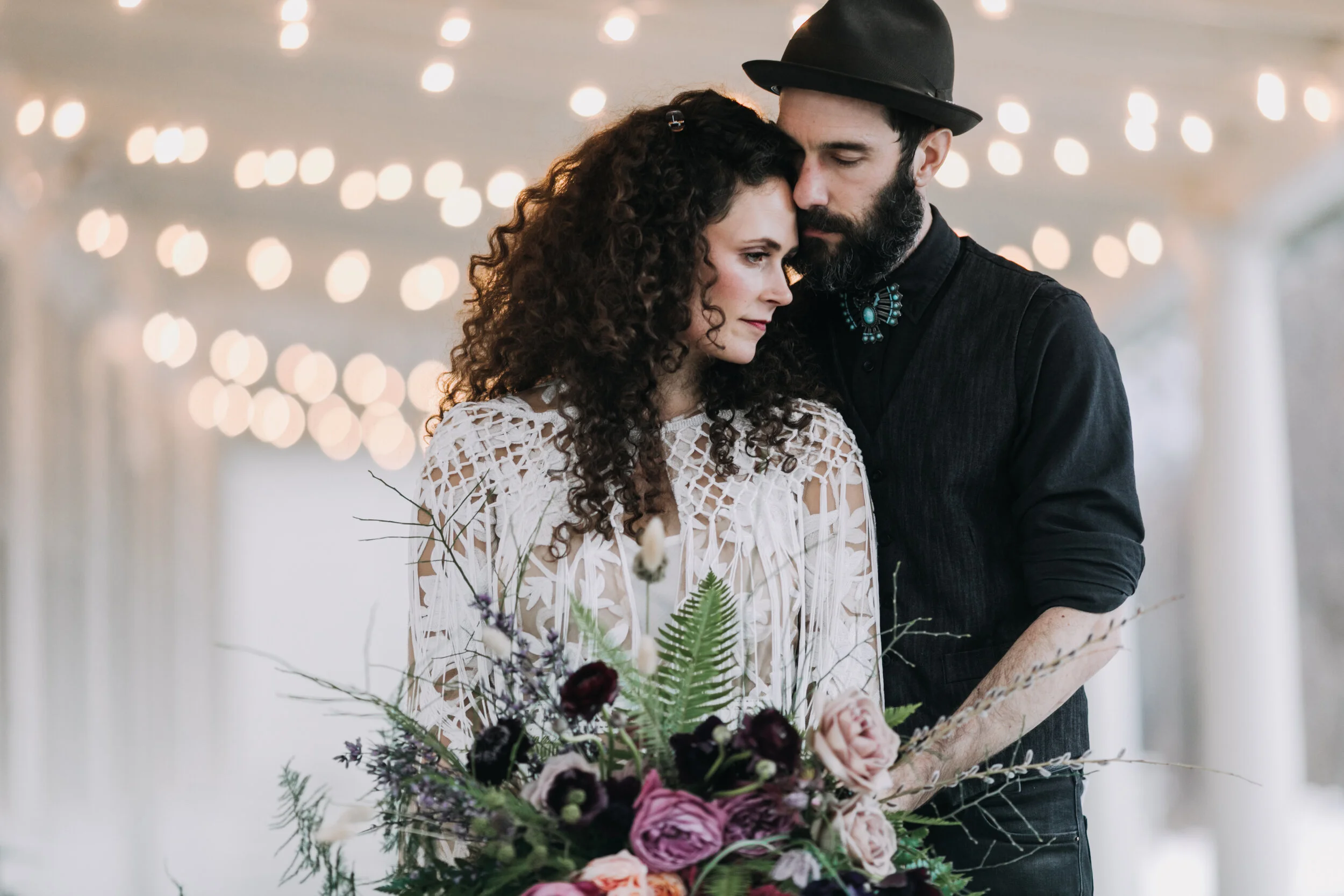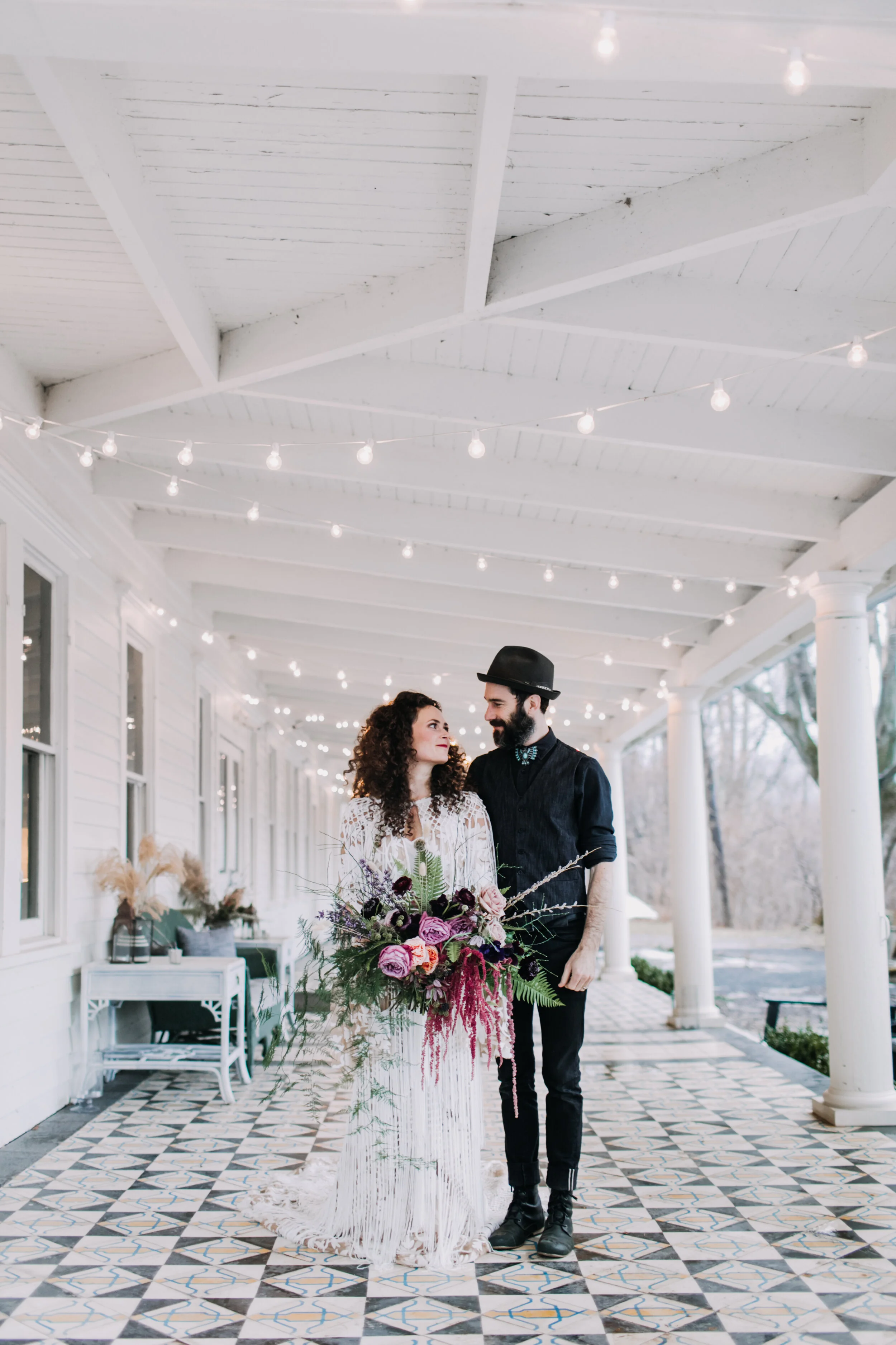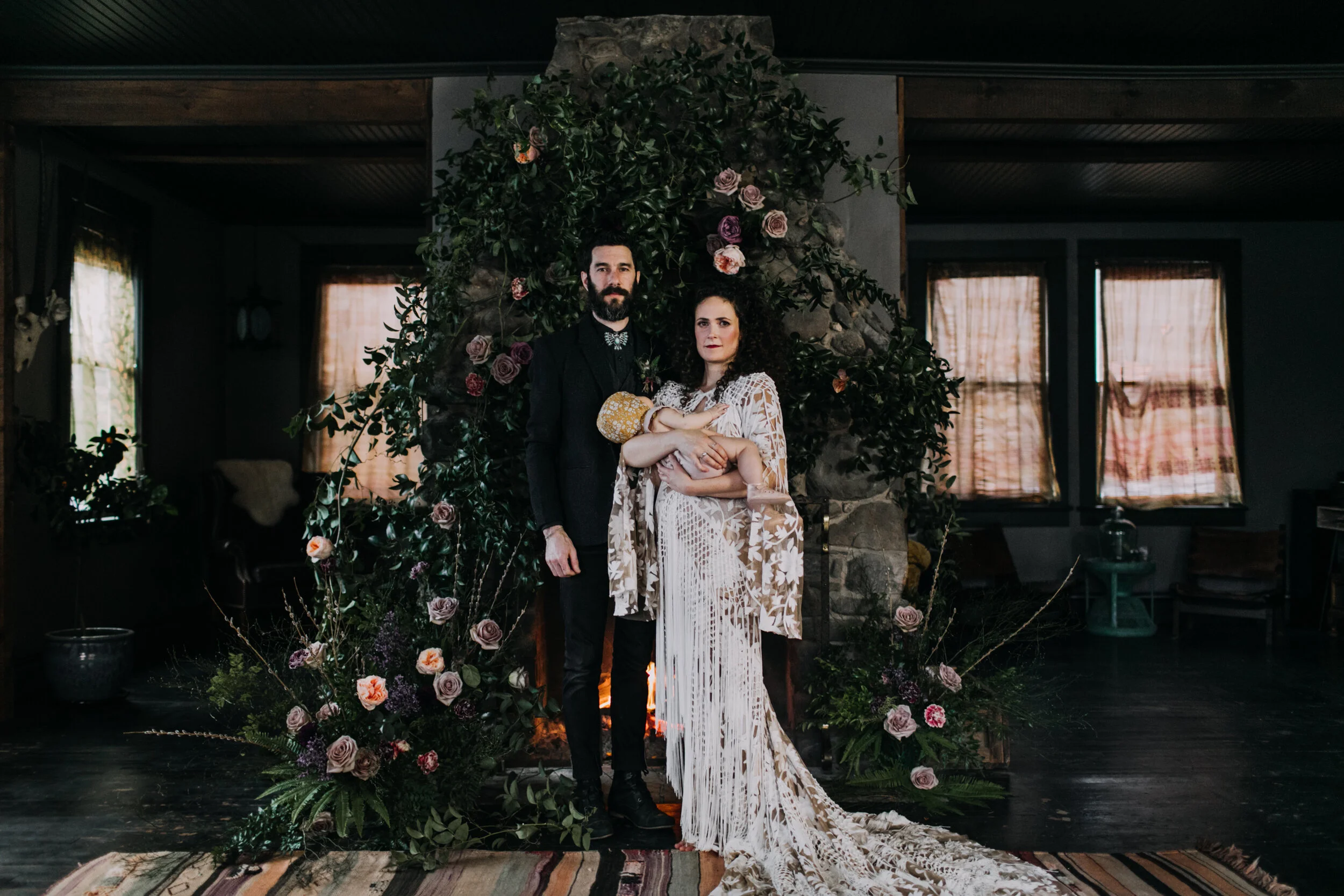 Design + Production: Feather and Rock Events. Florals: Dark and Diamond. Venue: Foxfire Mountain House. Invitations + Paper Goods: Lavender and Love Creative. Rentals: Party Rental Ltd. Videography: Solidarity Films. Cake: Clara’s Groovy Deliciousness. Dress: Rue De Seine, from Lovely Bride Philadelphia. Hair + Makeup: The Blush Sparrow. Jewelry: Emily Chelsea Jewelry.