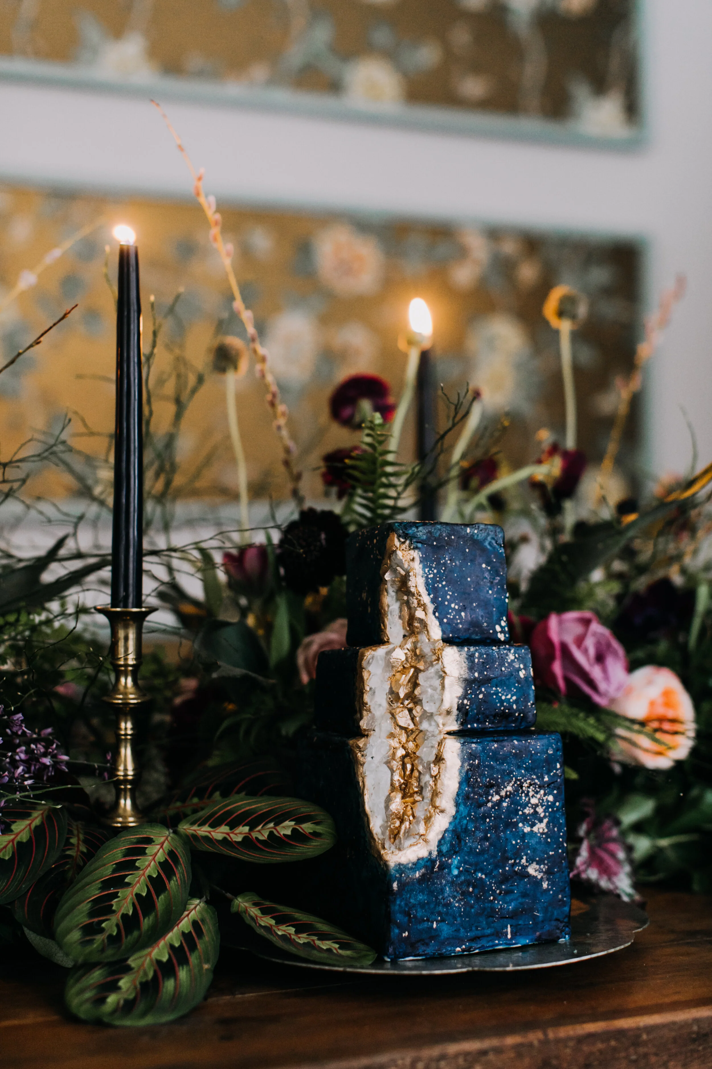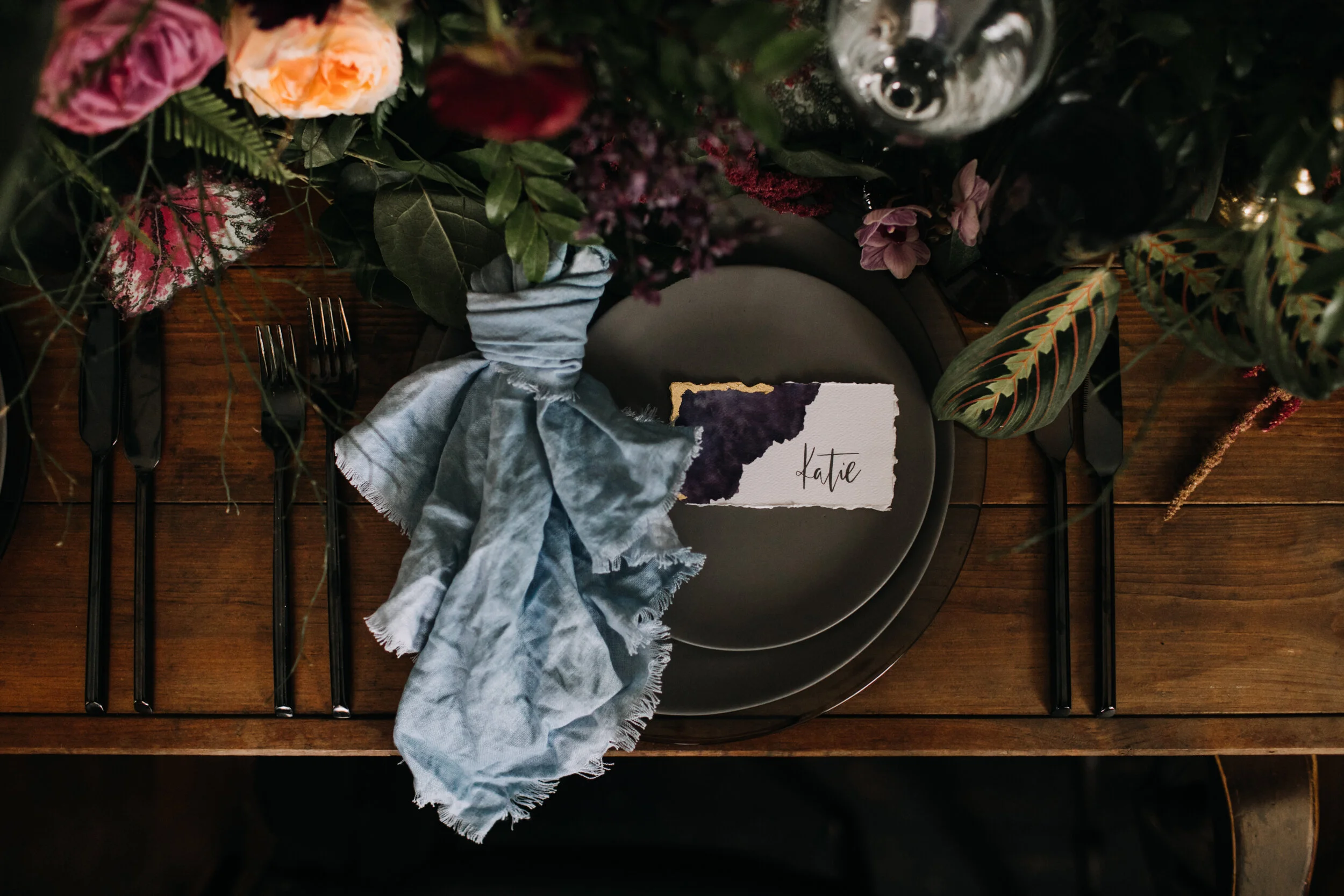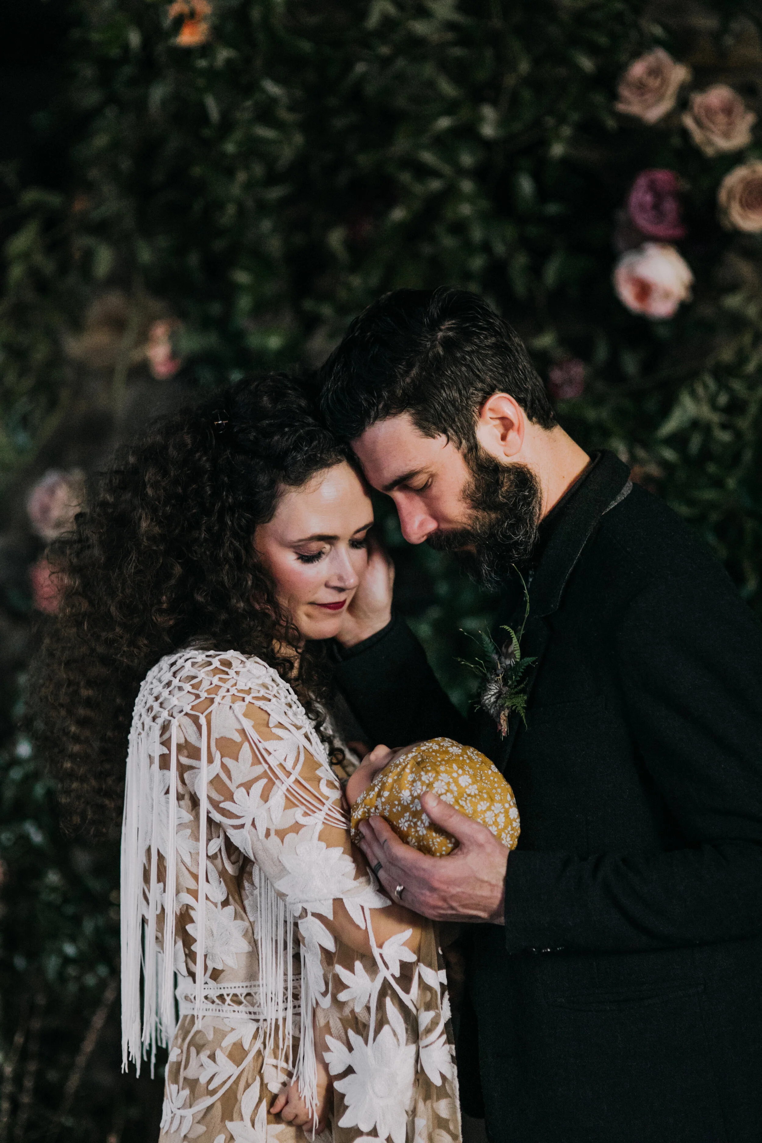 Design + Production: Feather and Rock Events. Florals: Dark and Diamond. Venue: Foxfire Mountain House. Invitations + Paper Goods: Lavender and Love Creative. Rentals: Party Rental Ltd. Videography: Solidarity Films. Cake: Clara’s Groovy Deliciousness. Dress: Rue De Seine, from Lovely Bride Philadelphia. Hair + Makeup: The Blush Sparrow. Jewelry: Emily Chelsea Jewelry.